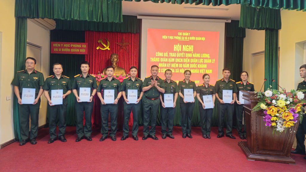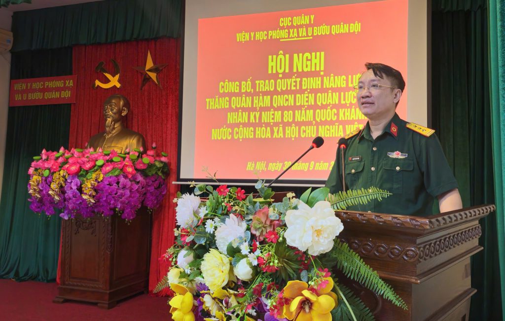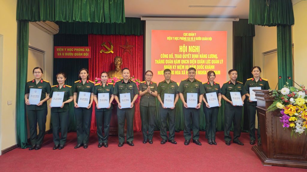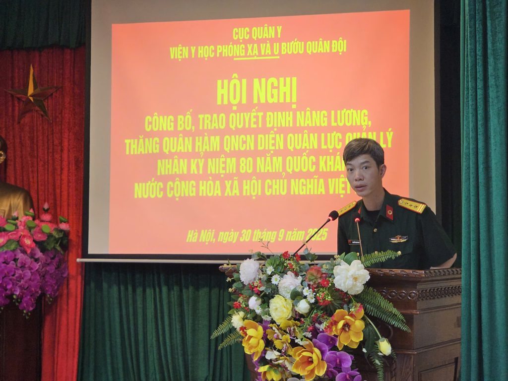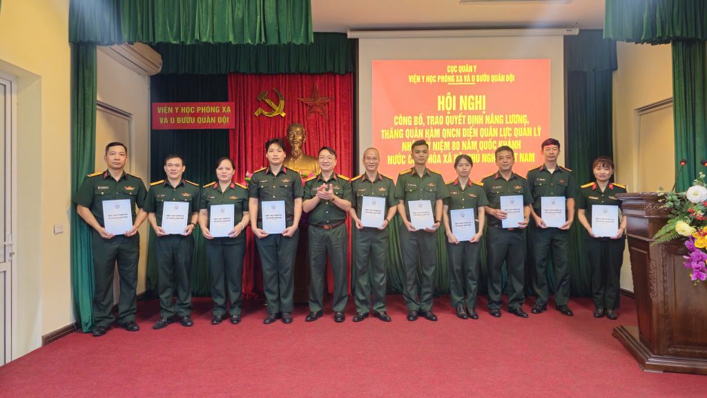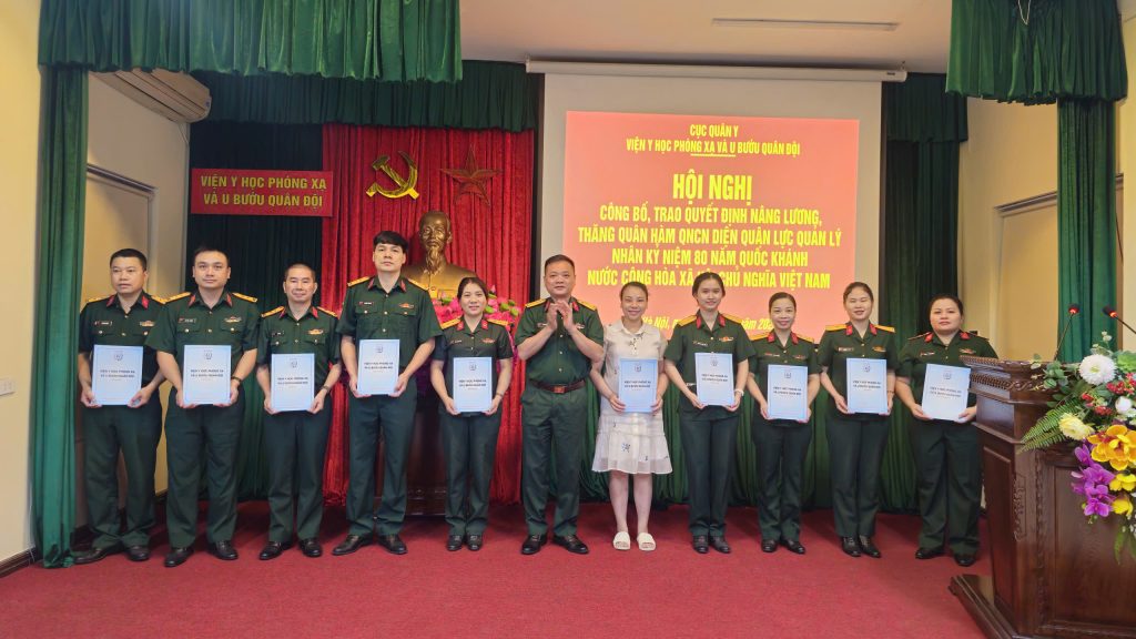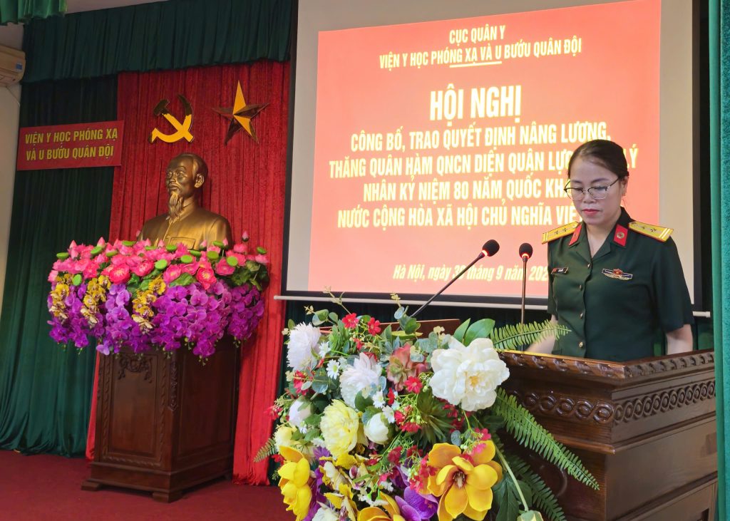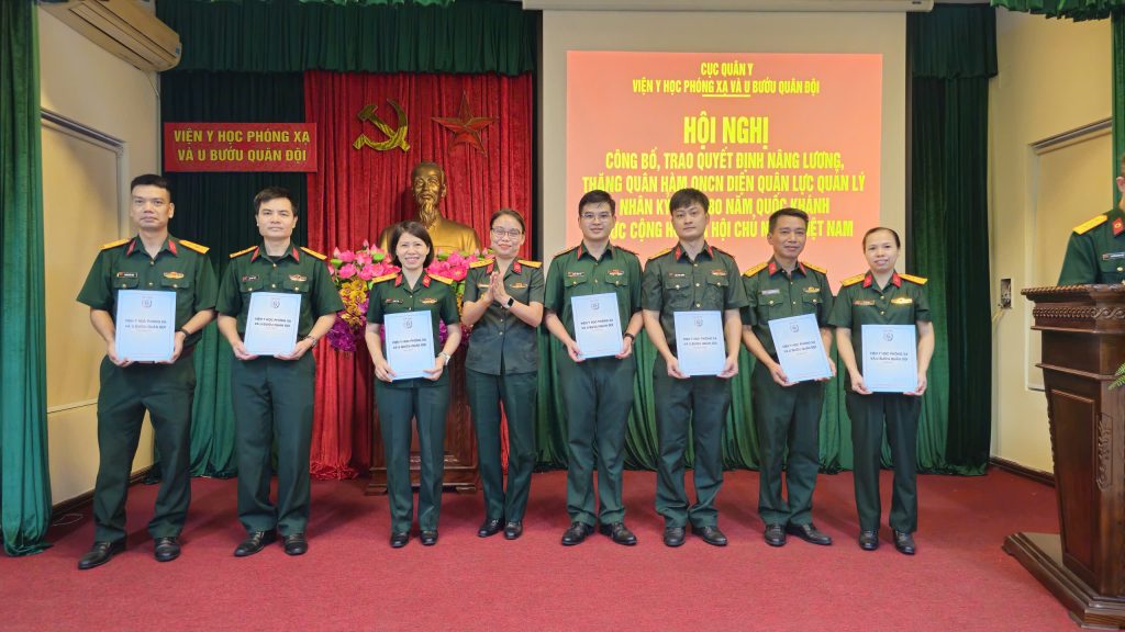 Ngày 30/9/2025, tại Viện Y học phóng xạ và U bướu Quân đội, Cục Quân y đã long trọng tổ chức Hội nghị công bố, trao quyết định nâng lương, thăng quân hàm Quân nhân chuyên nghiệp diện quân lực quản lý nhân kỷ niệm 80 năm Quốc khánh nước Cộng hòa xã hội chủ nghĩa Việt Nam (02/9/1945 – 02/9/2025).