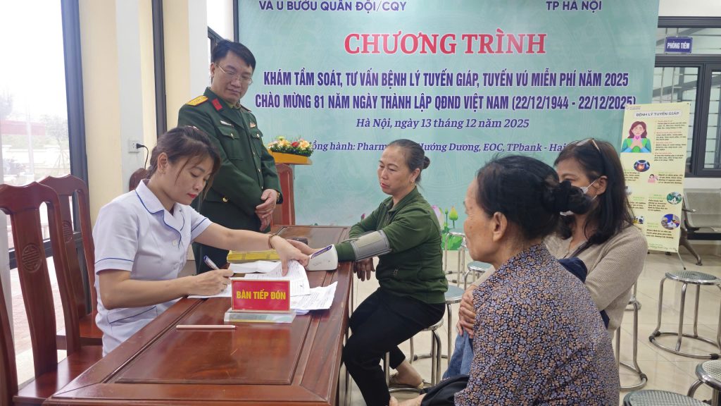 Nhằm thiết thực chào mừng 81 năm Ngày thành lập Quân đội Nhân dân Việt Nam (22/12/1944 – 22/12/2025), sáng ngày 13/12/2025, Viện Y học phóng xạ và U bướu Quân đội đã phối hợp với UBND xã Sơn Đồng tổ chức Chương trình khám tầm soát, tư vấn bệnh lý tuyến giáp và tuyến vú miễn phí cho nhân dân địa phương.